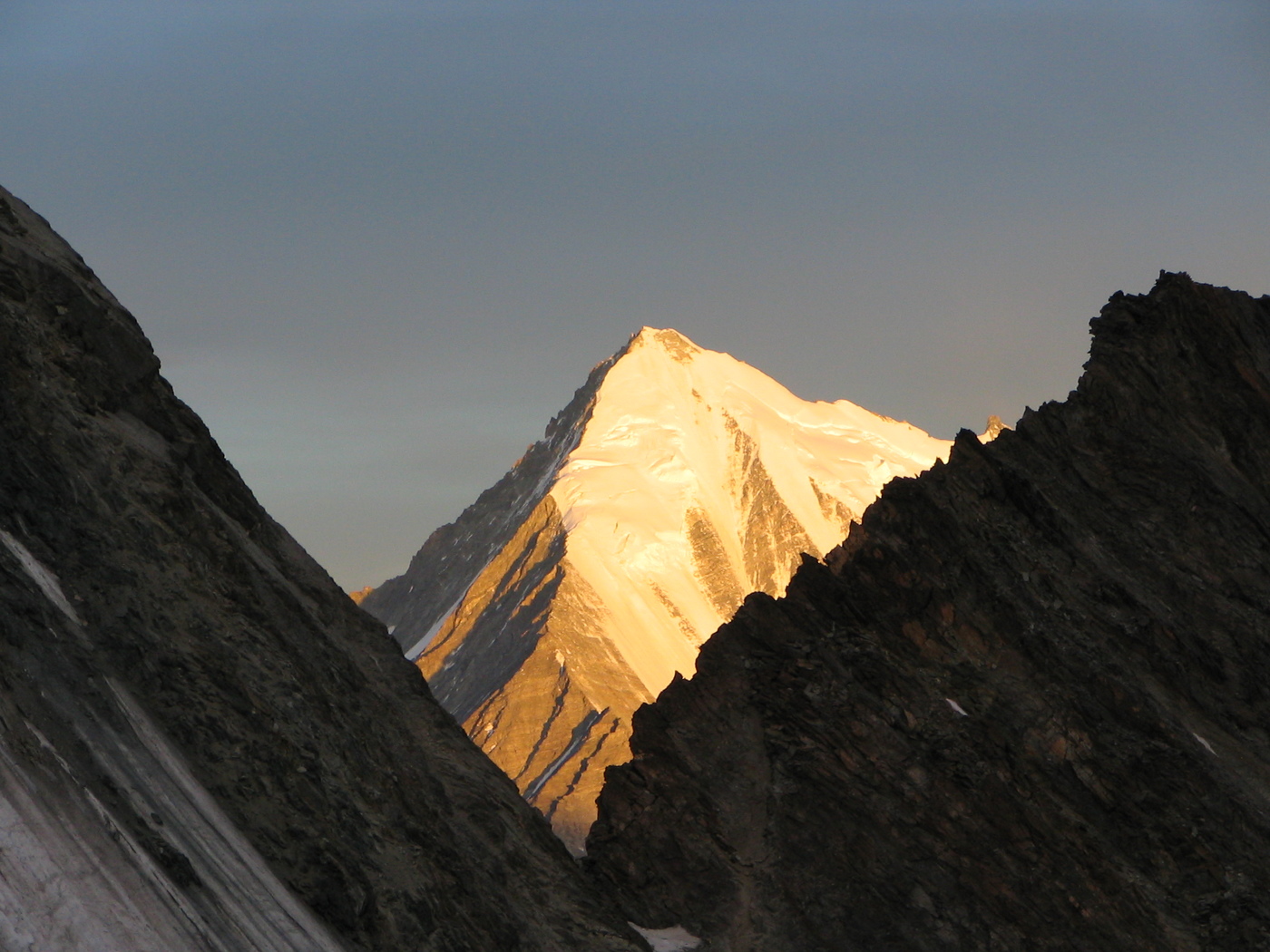 Weisshorn v jutranji zarji, slikan iz Doma (Peninske Alpe, Švica)